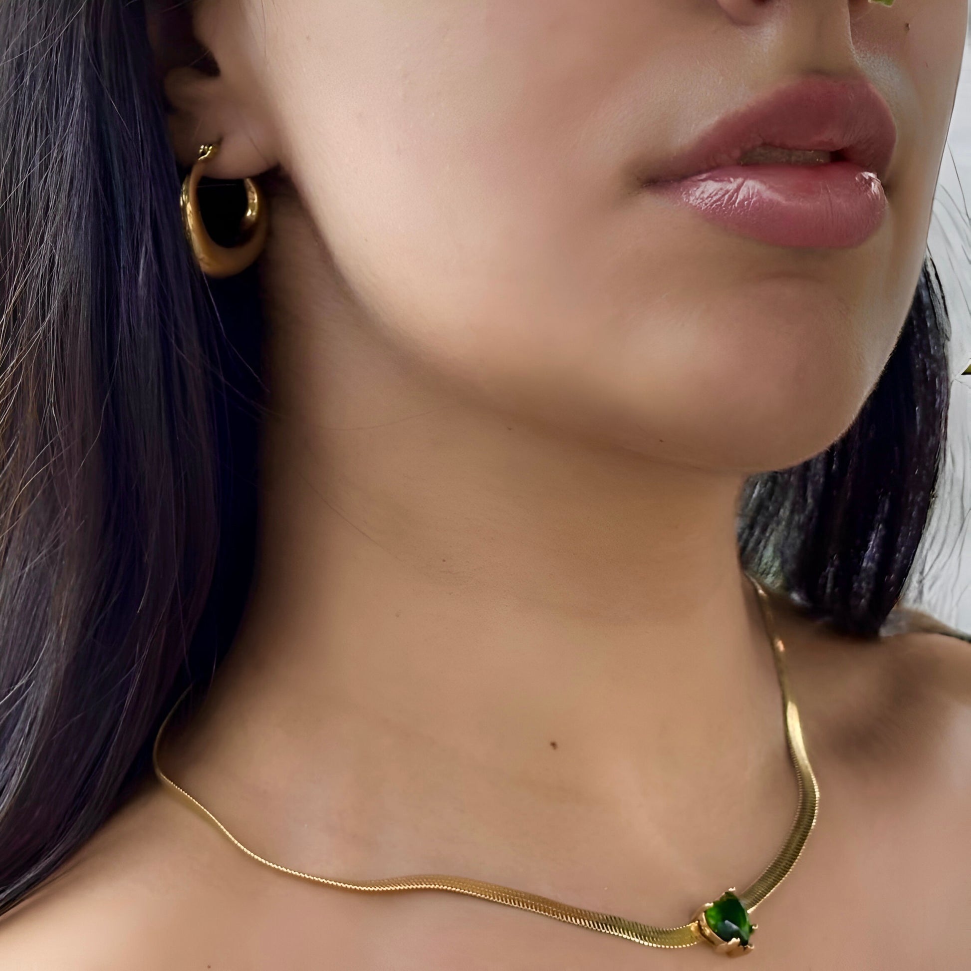 La Collana Zamenis unisce eleganza e resistenza grazie al nastro snake in acciaio inox placcato oro 18K, garantendo durata e brillantezza nel tempo. Il pendente a forma di cuore, impreziosito da uno zircone disponibile in tre raffinati colori – rosa, verde o bianco – aggiunge un tocco di colore e raffinatezza, rendendo questo gioiello perfetto per chi cerca un accessorio sofisticato e versatile.