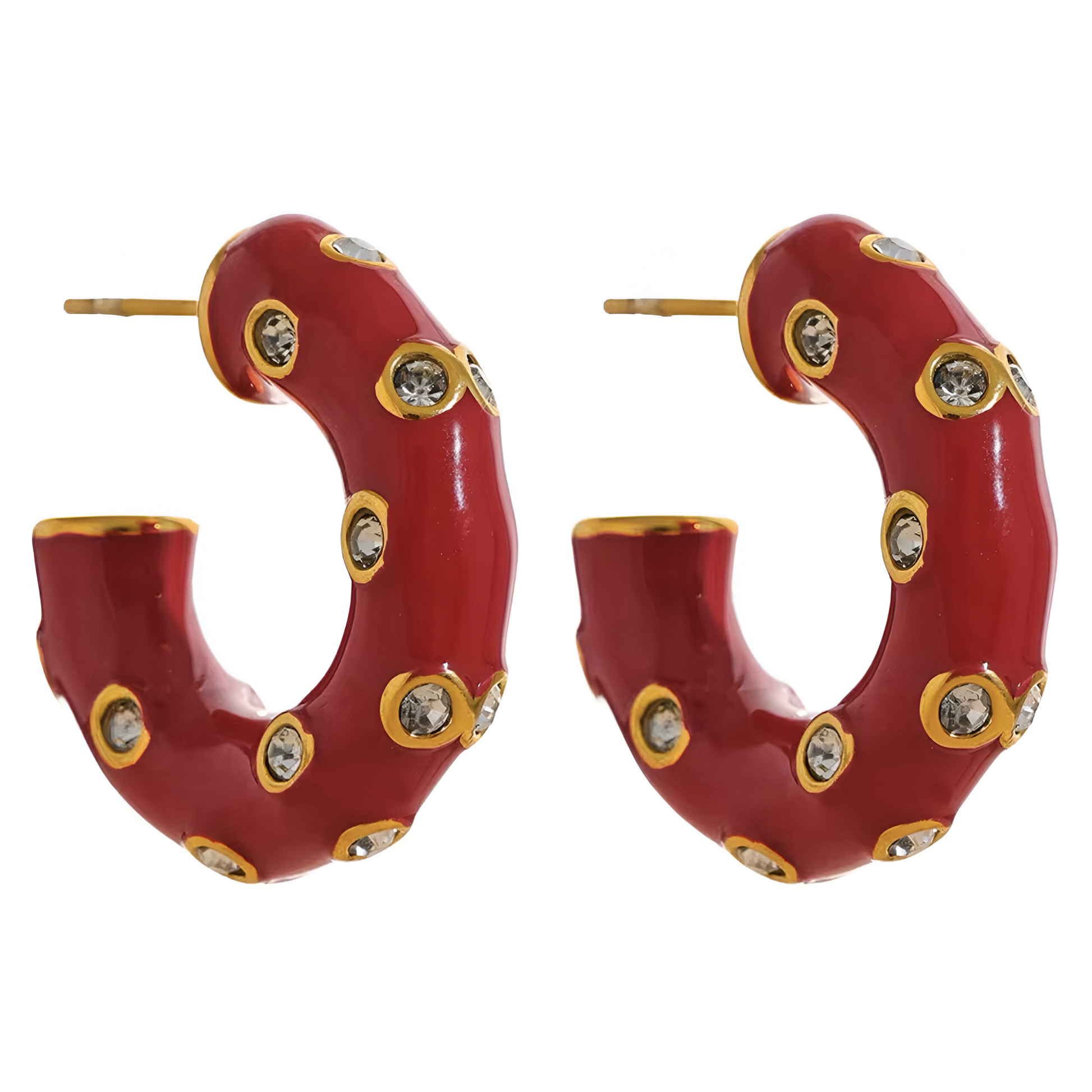 Ispirati ai templi di Agrigento, questi orecchini a cerchio sono disponibili in rosso, blu, nero e bianco, perfetti per ogni outfit.
