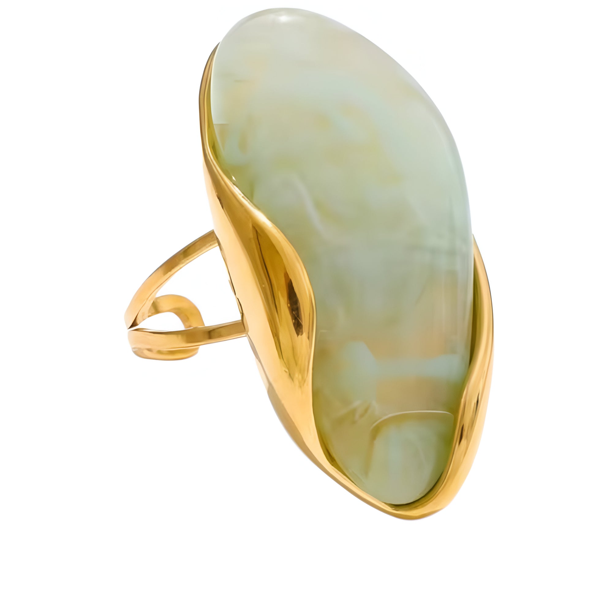 Gli Anelli Brume uniscono l’eleganza dell’acciaio inox placcato in oro 18K con la delicatezza di una pietra in resina epoxy a forma di mandorla. Disponibili in quattro sofisticate tonalità — cacao, ambra, verde acqua e panna — sono ideali per chi cerca un accessorio versatile e di grande personalità, capace di valorizzare con stile ogni look. Grazie ai materiali resistenti, assicurano durata e comfort nel tempo.